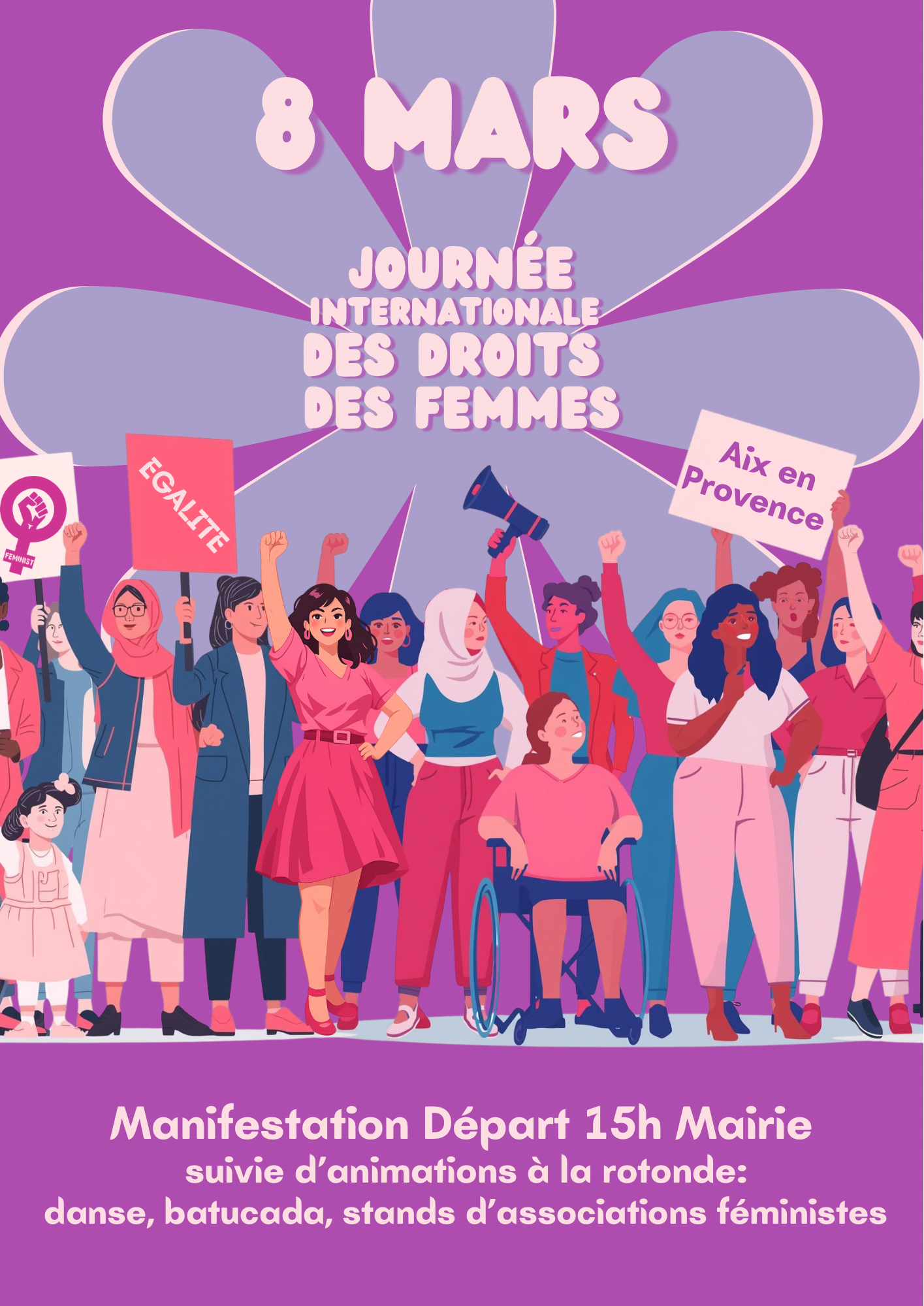 Dimanche 8 Mars 2026 à 15h, place de la Mairie : marchons ensemble à Aix-en-Provence pour un féminisme inclusif,...